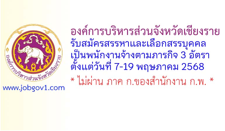 องค์การบริหารส่วนจังหวัดเชียงราย รับสมัครสรรหาและเลือกสรรบุคคลเป็นพนักงานจ้างตามภารกิจ 3 อัตรา ตั้งแต่วันที่ 7-19 พฤษภาคม 2568