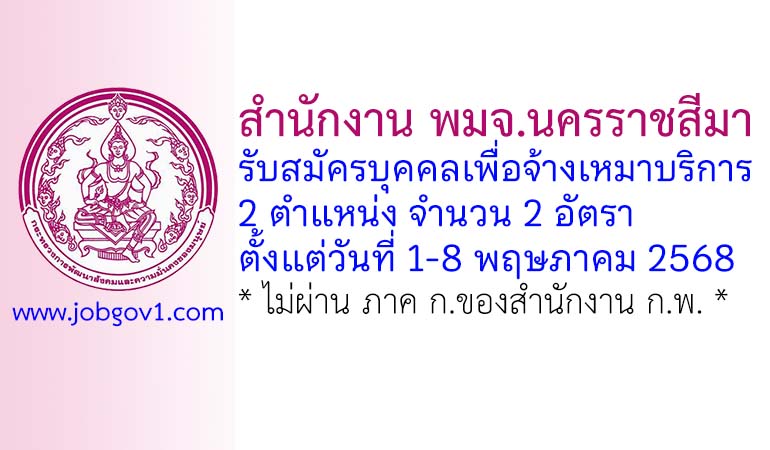 สำนักงาน พมจ.นครราชสีมา รับสมัครบุคคลเพื่อจ้างเหมาบริการ 2 อัตรา ตั้งแต่วันที่ 1-8 พฤษภาคม 2568
