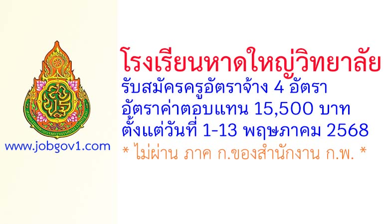 โรงเรียนหาดใหญ่วิทยาลัย รับสมัครครูอัตราจ้าง 4 อัตรา ตั้งแต่วันที่ 1-13 พฤษภาคม 2568