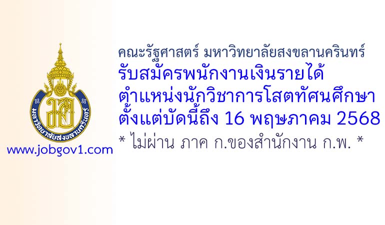 คณะรัฐศาสตร์ มหาวิทยาลัยสงขลานครินทร์ รับสมัครพนักงานเงินรายได้ ตำแหน่งนักวิชาการโสตทัศนศึกษา ตั้งแต่บัดนี้ถึง 16 พฤษภาคม 2568