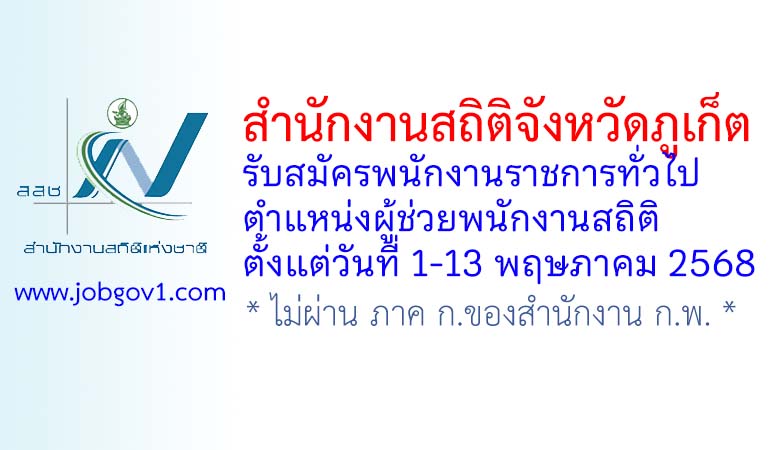 สำนักงานสถิติจังหวัดภูเก็ต รับสมัครพนักงานราชการทั่วไป ตำแหน่งผู้ช่วยพนักงานสถิติ ตั้งแต่วันที่ 1-13 พฤษภาคม 2568