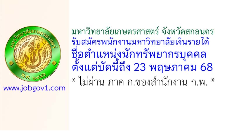 มหาวิทยาลัยเกษตรศาสตร์ จังหวัดสกลนคร รับสมัครพนักงานมหาวิทยาลัยเงินรายได้ ตำแหน่งนักทรัพยากรบุคคล ตั้งแต่บัดนี้ถึง 23 พฤษภาคม 2568