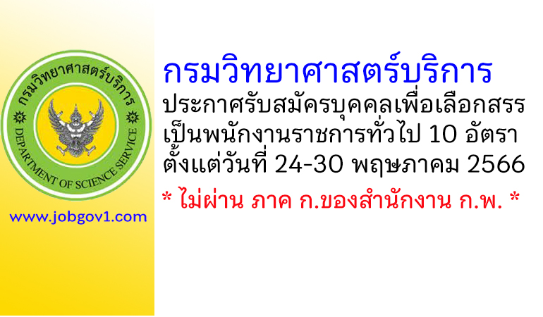 กรมวิทยาศาสตร์บริการ รับสมัครบุคคลเพื่อเลือกสรรเป็นพนักงานราชการทั่วไป 10 อัตรา ตั้งแต่วันที่ 24-30 พฤษภาคม 2566