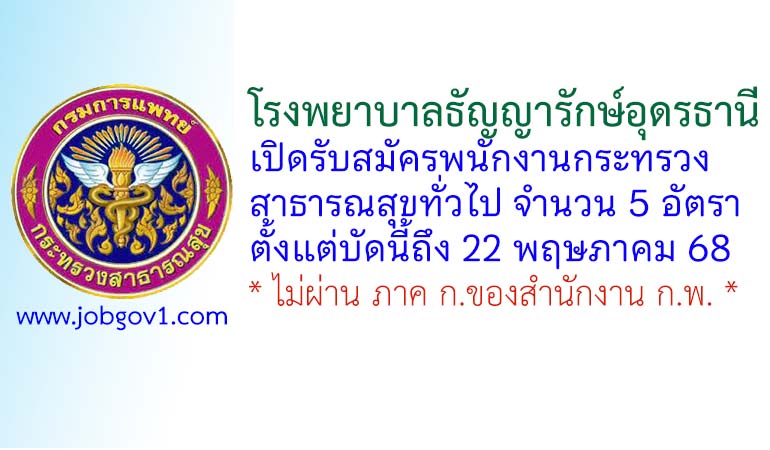 โรงพยาบาลธัญญารักษ์อุดรธานี รับสมัครพนักงานกระทรวงสาธารณสุขทั่วไป 5 อัตรา ตั้งแต่บัดนี้ถึง 22 พฤษภาคม 2568