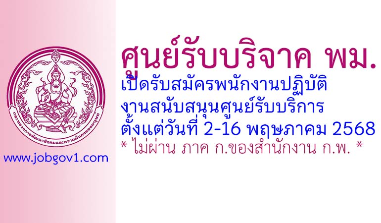 ศูนย์รับบริจาค พม. รับสมัครพนักงานปฏิบัติงานสนับสนุนศูนย์รับบริการ ตั้งแต่วันที่ 2-16 พฤษภาคม 2568