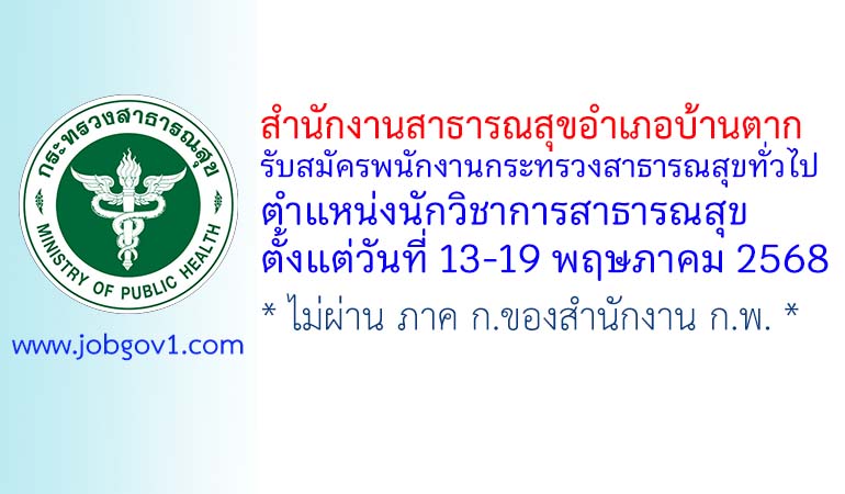 สำนักงานสาธารณสุขอำเภอบ้านตาก รับสมัครพนักงานกระทรวงสาธารณสุขทั่วไป ตำแหน่งนักวิชาการสาธารณสุข ตั้งแต่วันที่ 13-19 พฤษภาคม 2568