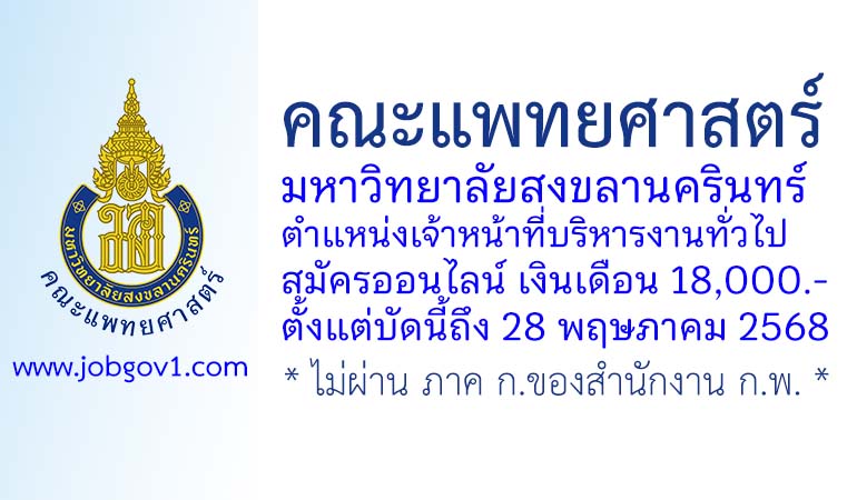 คณะแพทยศาสตร์ มหาวิทยาลัยสงขลานครินทร์ รับสมัครตำแหน่งเจ้าหน้าที่บริหารงานทั่วไป ตั้งแต่บัดนี้ถึง 28 พฤษภาคม 2568