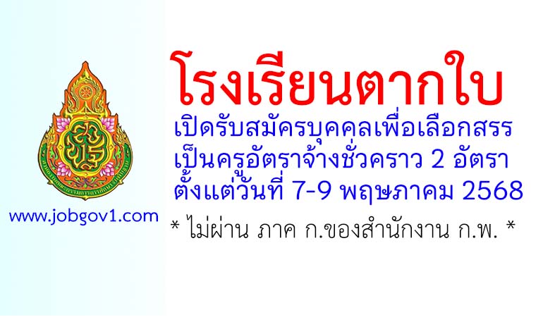 โรงเรียนตากใบ รับสมัครครูอัตราจ้างชั่วคราว 2 อัตรา ตั้งแต่วันที่ 7-9 พฤษภาคม 2568