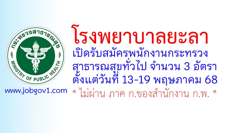 โรงพยาบาลยะลา รับสมัครพนักงานกระทรวงสาธารณสุขทั่วไป 3 อัตรา ตั้งแต่วันที่ 13-19 พฤษภาคม 2568