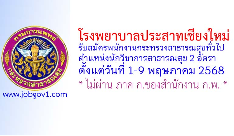 โรงพยาบาลประสาทเชียงใหม่ รับสมัครพนักงานกระทรวงสาธารณสุขทั่วไป ตำแหน่งนักวิชาการสาธารณสุข 2 อัตรา ตั้งแต่วันที่ 1-9 พฤษภาคม 2568