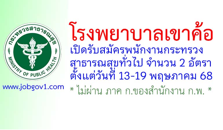 โรงพยาบาลเขาค้อ รับสมัครพนักงานกระทรวงสาธารณสุขทั่วไป 2 อัตรา ตั้งแต่วันที่ 13-19 พฤษภาคม 2568