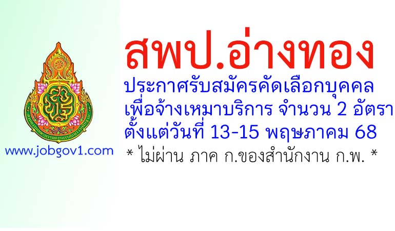 สพป.อ่างทอง รับสมัครคัดเลือกบุคคลเพื่อจ้างเหมาบริการ 2 อัตรา ตั้งแต่วันที่ 13-15 พฤษภาคม 2568