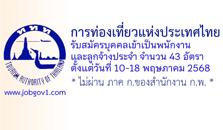 การท่องเที่ยวแห่งประเทศไทย รับสมัครพนักงานและลูกจ้างประจำ 43 อัตรา ตั้งแต่วันที่ 10-18 พฤษภาคม 2568