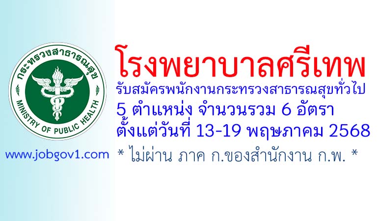 โรงพยาบาลศรีเทพ รับสมัครพนักงานกระทรวงสาธารณสุขทั่วไป 6 อัตรา ตั้งแต่วันที่ 13-19 พฤษภาคม 2568