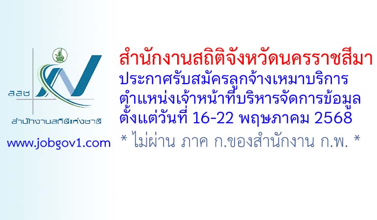 สำนักงานสถิติจังหวัดนครราชสีมา รับสมัครลูกจ้างเหมาบริการ ตำแหน่งเจ้าหน้าที่บริหารจัดการข้อมูล ตั้งแต่วันที่ 16-22 พฤษภาคม 2568
