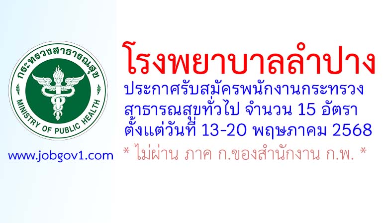 โรงพยาบาลลำปาง รับสมัครพนักงานกระทรวงสาธารณสุขทั่วไป 15 อัตรา ตั้งแต่วันที่ 13-20 พฤษภาคม 2568