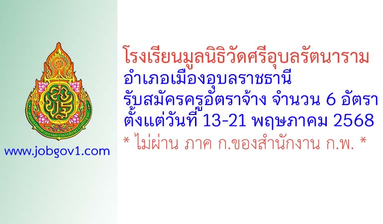 โรงเรียนมูลนิธิวัดศรีอุบลรัตนาราม รับสมัครครูอัตราจ้าง จำนวน 6 อัตรา ตั้งแต่วันที่ 13-21 พฤษภาคม 2568