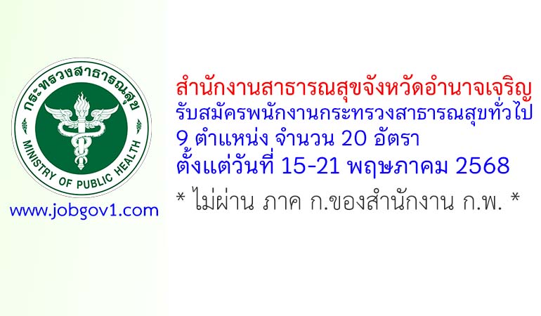 สำนักงานสาธารณสุขจังหวัดอำนาจเจริญ รับสมัครพนักงานกระทรวงสาธารณสุขทั่วไป 20 อัตรา ตั้งแต่วันที่ 15-21 พฤษภาคม 2568
