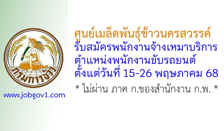 ประกาศศูนย์เมล็ดพันธุ์ข้าวนครสวรรค์ เรื่อง รับสมัครบุคคลเพื่อคัดเลือกเป็นพนักงานจ้างเหมาบริการ ตำแหน่งพนักงานขับรถยนต์