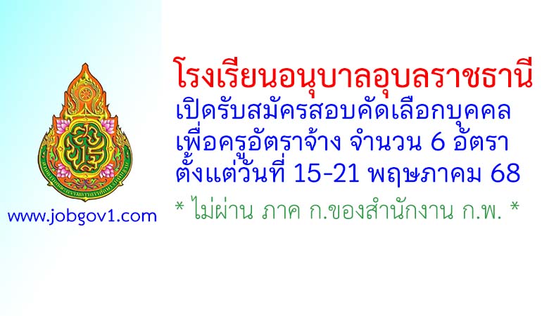 โรงเรียนอนุบาลอุบลราชธานี รับสมัครครูอัตราจ้าง 6 อัตรา ตั้งแต่วันที่ 15-21 พฤษภาคม 2568