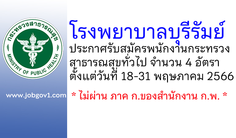 โรงพยาบาลบุรีรัมย์ รับสมัครพนักงานกระทรวงสาธารณสุขทั่วไป 4 อัตรา ตั้งแต่วันที่ 18-31 พฤษภาคม 2566