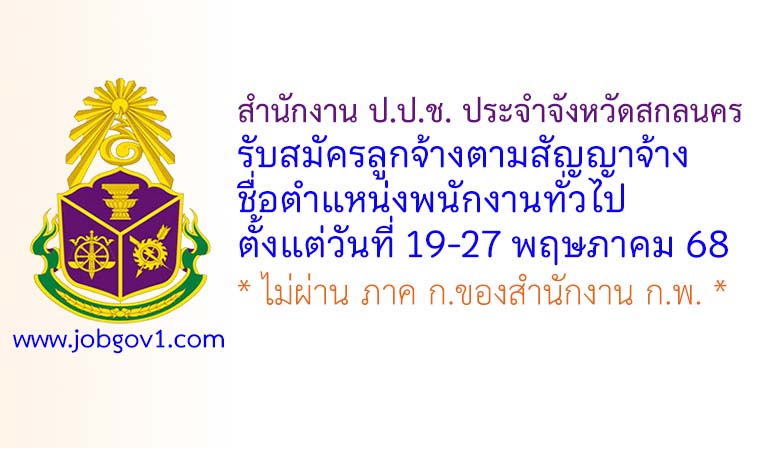 สำนักงาน ป.ป.ช. ประจำจังหวัดสกลนคร รับสมัครลูกจ้างตามสัญญาจ้าง ตำแหน่งพนักงานทั่วไป ตั้งแต่วันที่ 19-27 พฤษภาคม 2568