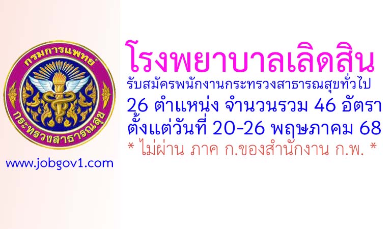 โรงพยาบาลเลิดสิน รับสมัครพนักงานกระทรวงสาธารณสุขทั่วไป 46 อัตรา ตั้งแต่วันที่ 20-26 พฤษภาคม 2568