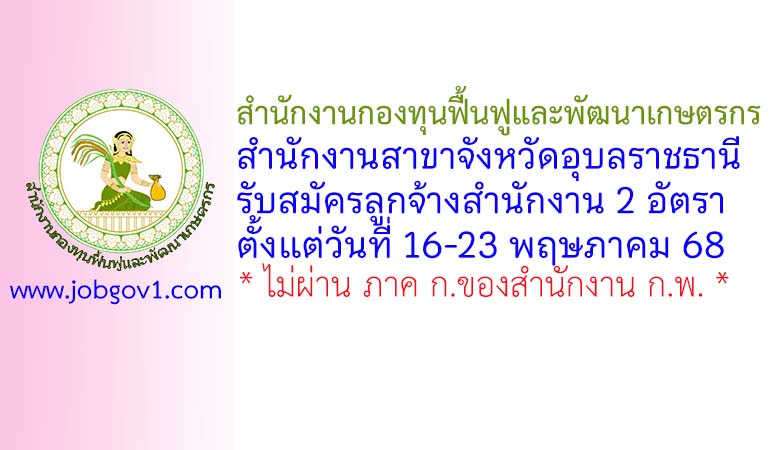สำนักงานกองทุนฟื้นฟูและพัฒนาเกษตรกร สำนักงานสาขาจังหวัดอุบลราชธานี รับสมัครลูกจ้างสำนักงาน 2 อัตรา ตั้งแต่วันที่ 16-23 พฤษภาคม 2568