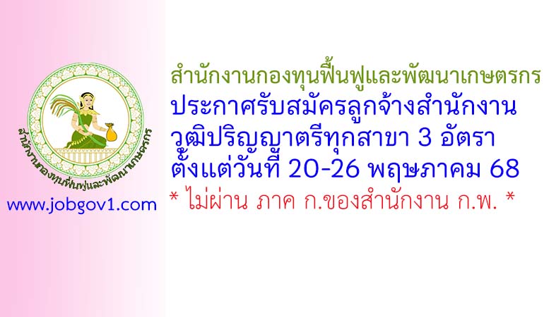 สำนักงานกองทุนฟื้นฟูและพัฒนาเกษตรกร รับสมัครลูกจ้างสำนักงาน 3 อัตรา ตั้งแต่วันที่ 20-26 พฤษภาคม 2568