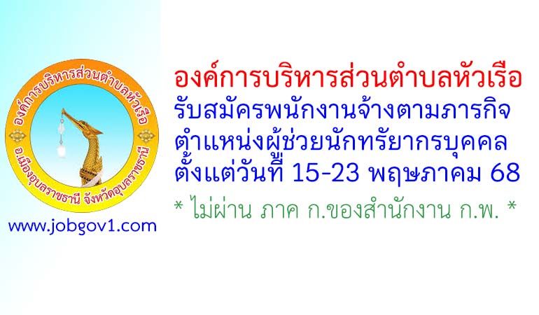 องค์การบริหารส่วนตำบลหัวเรือ รับสมัครพนักงานจ้างตามภารกิจ ตำแหน่งผู้ช่วยนักทรัยากรบุคคล ตั้งแต่วันที่ 15-23 พฤษภาคม 2568