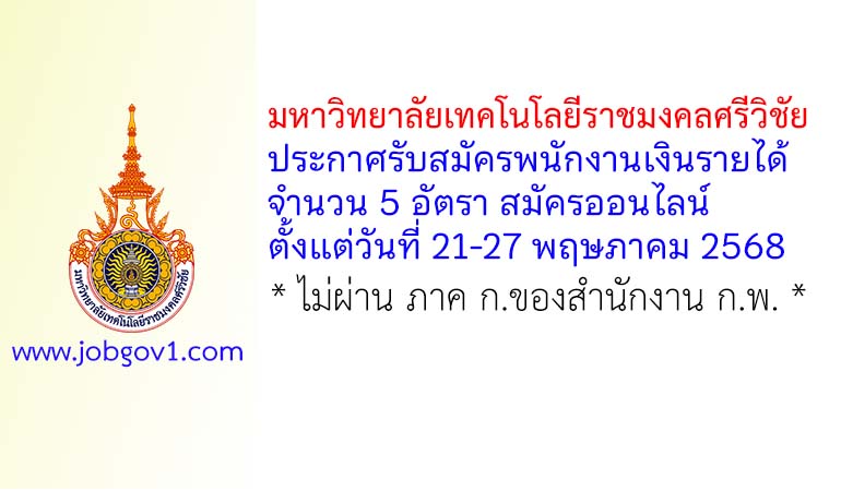 มหาวิทยาลัยเทคโนโลยีราชมงคลศรีวิชัย รับสมัครพนักงานเงินรายได้ 5 อัตรา ตั้งแต่วันที่ 21-27 พฤษภาคม 2568
