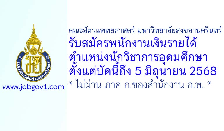คณะสัตวแพทยศาสตร์ มหาวิทยาลัยสงขลานครินทร์ รับสมัครพนักงานเงินรายได้ ตำแหน่งนักวิชาการอุดมศึกษา ตั้งแต่บัดนี้ถึง 5 มิถุนายน 2568