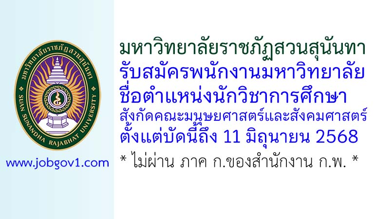 มหาวิทยาลัยราชภัฏสวนสุนันทา รับสมัครพนักงานมหาวิทยาลัย ตำแหน่งนักวิชาการศึกษา สังกัดคณะมนุษยศาสตร์และสังคมศาสตร์ ตั้งแต่บัดนี้ถึง 11 มิถุนายน 2568