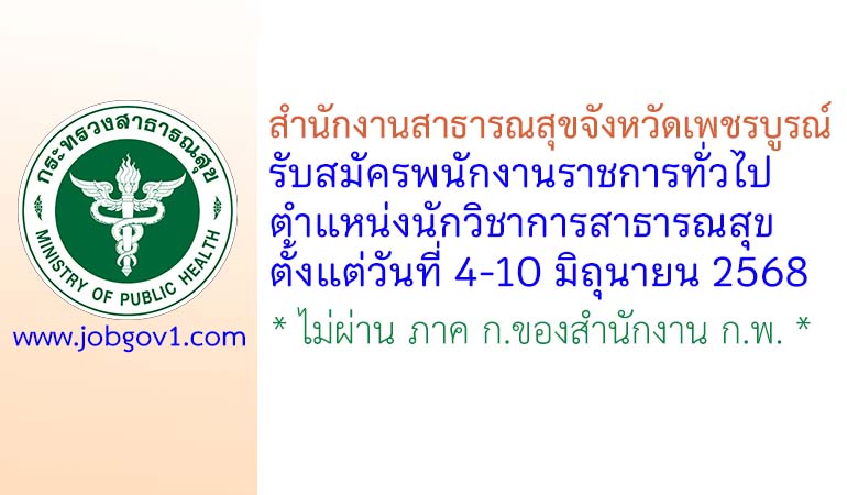 สำนักงานสาธารณสุขจังหวัดเพชรบูรณ์ รับสมัครพนักงานราชการทั่วไป ตำแหน่งนักวิชาการสาธารณสุข ตั้งแต่วันที่ 4-10 มิถุนายน 2568