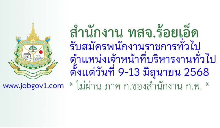 สำนักงาน ทสจ.ร้อยเอ็ด รับสมัครพนักงานราชการทั่วไป ตำแหน่งเจ้าหน้าที่บริหารงานทั่วไป ตั้งแต่วันที่ 9-13 มิถุนายน 2568
