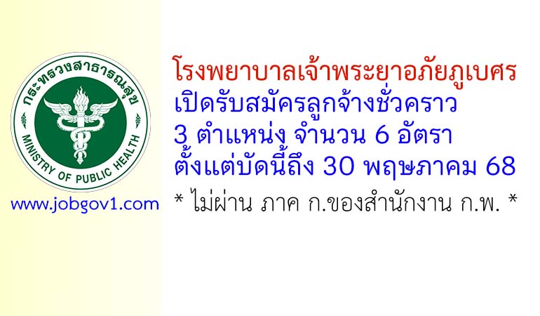 โรงพยาบาลเจ้าพระยาอภัยภูเบศร รับสมัครลูกจ้างชั่วคราว 6 อัตรา ตั้งแต่บัดนี้ถึง 30 พฤษภาคม 2568