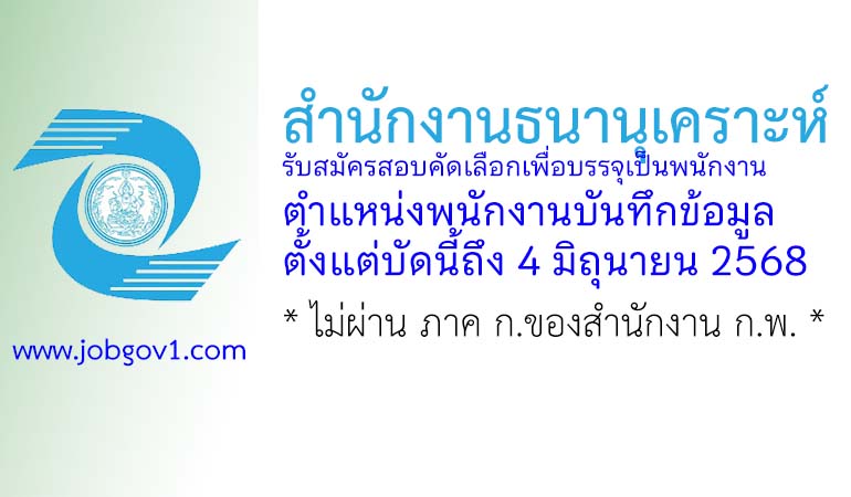 สำนักงานธนานุเคราะห์ รับสมัครสอบคัดเลือกเพื่อบรรจุเป็นพนักงาน ตำแหน่งพนักงานบันทึกข้อมูล ตั้งแต่บัดนี้ถึง 4 มิถุนายน 2568