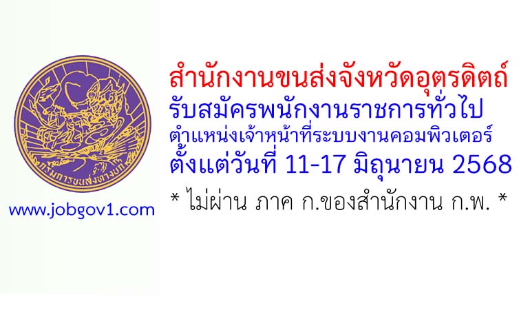 สำนักงานขนส่งจังหวัดอุตรดิตถ์ รับสมัครพนักงานราชการทั่วไป ตำแหน่งเจ้าหน้าที่ระบบงานคอมพิวเตอร์ ตั้งแต่วันที่ 11-17 มิถุนายน 2568