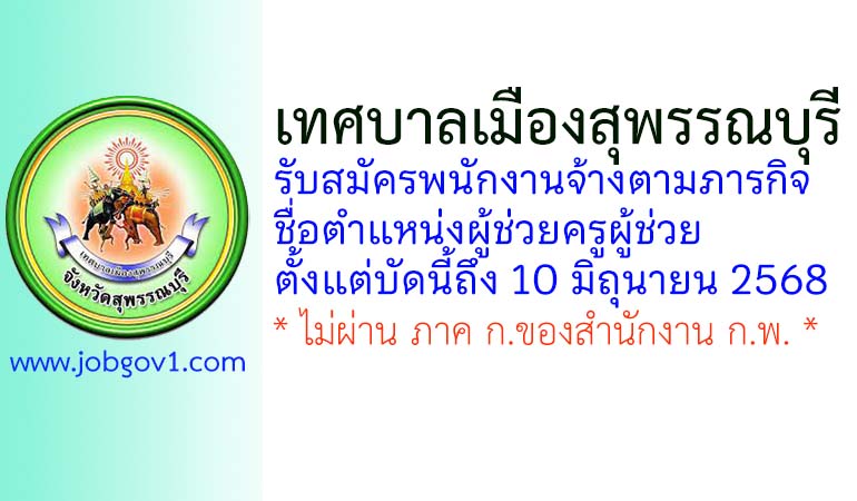 เทศบาลเมืองสุพรรณบุรี รับสมัครพนักงานจ้างตามภารกิจ ตำแหน่งผู้ช่วยครูผู้ช่วย ตั้งแต่บัดนี้ถึง 10 มิถุนายน 2568