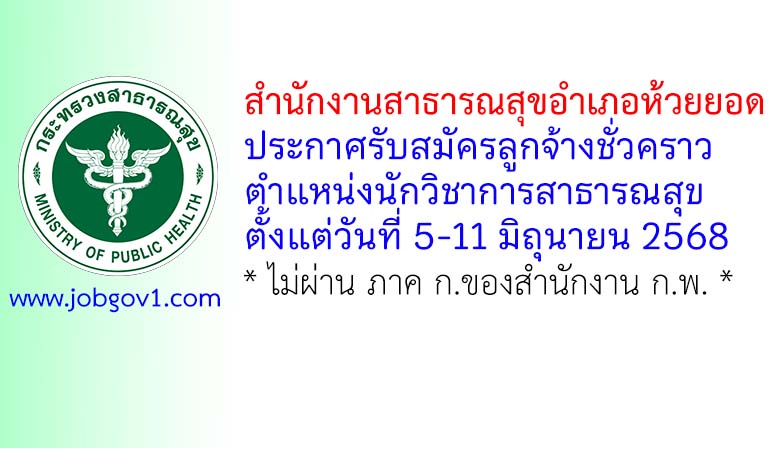 สำนักงานสาธารณสุขอำเภอห้วยยอด รับสมัครลูกจ้างชั่วคราว ตำแหน่งนักวิชาการสาธารณสุข ตั้งแต่วันที่ 5-11 มิถุนายน 2568