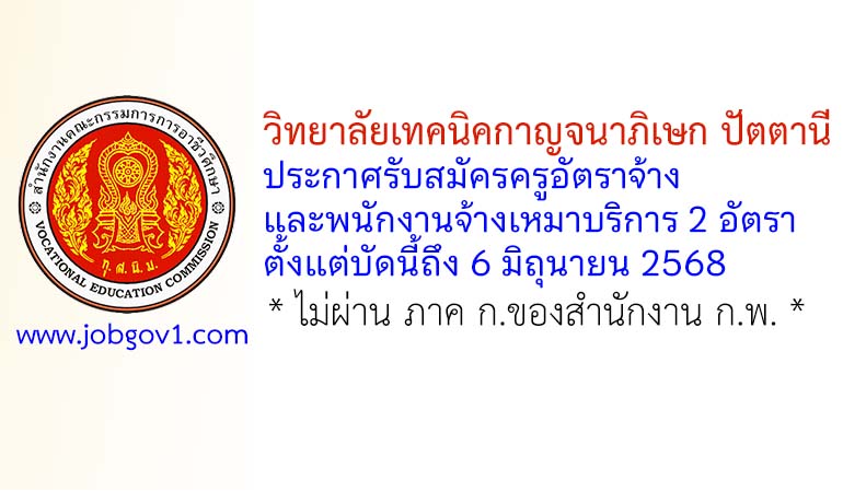 วิทยาลัยเทคนิคกาญจนาภิเษก ปัตตานี รับสมัครครูอัตราจ้าง และพนักงานจ้างเหมาบริการ 2 อัตรา ตั้งแต่บัดนี้ถึง 6 มิถุนายน 2568