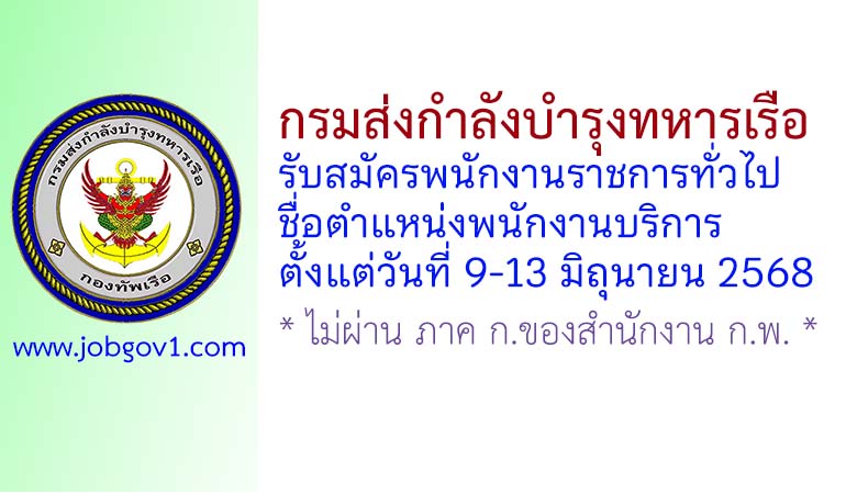 กรมส่งกำลังบำรุงทหารเรือ รับสมัครพนักงานราชการทั่วไป ตำแหน่งพนักงานบริการ ตั้งแต่วันที่ 9-13 มิถุนายน 2568