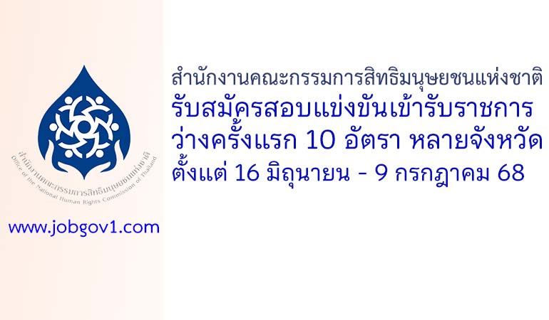 สำนักงานคณะกรรมการสิทธิมนุษยชนแห่งชาติ รับสมัครสอบแข่งขันเพื่อบรรจุบุคคลเข้ารับราชการ ว่างครั้งแรก 10 อัตรา ตั้งแต่ 16 มิถุนายน – 9 กรกฎาคม 2568