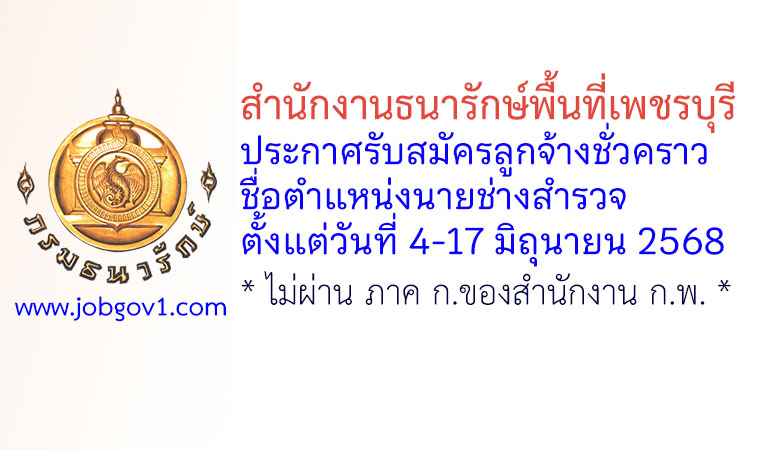 สำนักงานธนารักษ์พื้นที่เพชรบุรี รับสมัครลูกจ้างชั่วคราว ตำแหน่งนายช่างสำรวจ ตั้งแต่วันที่ 4-17 มิถุนายน 2568