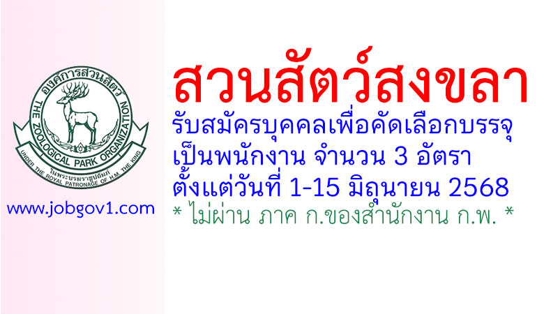 สวนสัตว์สงขลา รับสมัครบุคคลเพื่อคัดเลือกบรรจุเป็นพนักงาน 3 อัตรา ตั้งแต่วันที่ 1-15 มิถุนายน 2568