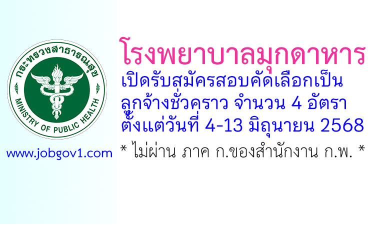 โรงพยาบาลมุกดาหาร รับสมัครสอบคัดเลือกเป็นลูกจ้างชั่วคราว 4 อัตรา ตั้งแต่วันที่ 4-13 มิถุนายน 2568