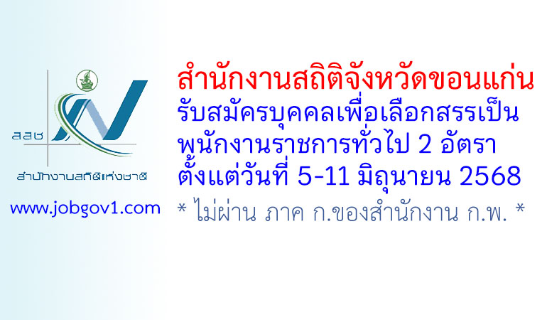 สำนักงานสถิติจังหวัดขอนแก่น รับสมัครบุคคลเพื่อเลือกสรรเป็นพนักงานราชการทั่วไป 2 อัตรา ตั้งแต่วันที่ 5-11 มิถุนายน 2568