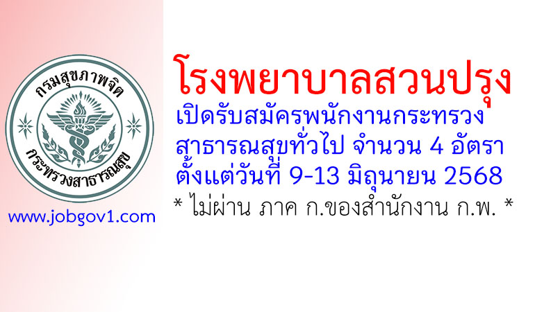 โรงพยาบาลสวนปรุง รับสมัครพนักงานกระทรวงสาธารณสุขทั่วไป 4 อัตรา ตั้งแต่วันที่ 9-13 มิถุนายน 2568