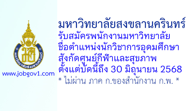 มหาวิทยาลัยสงขลานครินทร์ รับสมัครพนักงานมหาวิทยาลัย ตำแหน่งนักวิชาการอุดมศึกษา สังกัดศูนย์กีฬาและสุขภาพ ตั้งแต่บัดนี้ถึง 30 มิถุนายน 2568