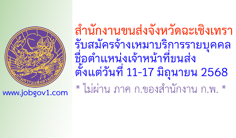 สำนักงานขนส่งจังหวัดฉะเชิงเทรา รับสมัครจ้างเหมาบริการรายบุคคล ตำแหน่งเจ้าหน้าที่ขนส่ง ตั้งแต่วันที่ 11-17 มิถุนายน 2568